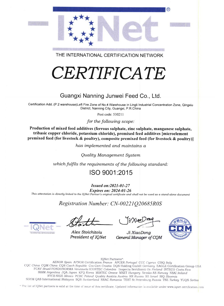 駿威—添加劑預(yù)混合飼料生產(chǎn)許可證